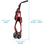 - WHEELS & BREAKS: Equipped with 5” rubber wheels with a 1″ wide base in the front and dual rubber wheels in the back. NOVA’s wheels are durable, great for indoor and outdoor use and make the ride smooth and stable. The rear wheels have a push down lock, which operates easily by using a spring to allow the large rubber tip to hold the walker in place, ensuring user safety