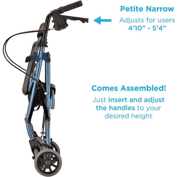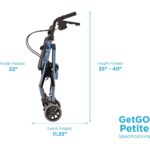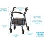 - CHOOSE YOUR PERFECT SIZE – STANDARD, PETITE & PETITE NARROW: The GetGO Classic is a true NOVA classic with our signature design and best features. The GetGo comes in 3 sizes – STANDARD (22.25” Seat Height for Users 5’4” – 6’1”), PETITE (18.5” Seat Height for Users 4’10” – 5’4” – formerly called “Junior”) and PETITE NARROW (18.5” Seat Height for users 4’10” – 5’4” in need of more narrow frame and ultra light rollator). The GetGO also comes with a much needed patented bonus feature – The Lock n’ Load, that locks the walker in a folded position, making it much easier to lift in & out of a car.