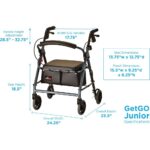 - CHOOSE YOUR PERFECT SIZE – STANDARD, PETITE & PETITE NARROW: The GetGO Classic is a true NOVA classic with our signature design and best features. The GetGo comes in 3 sizes – STANDARD (22.25” Seat Height for Users 5’4” – 6’1”), PETITE (18.5” Seat Height for Users 4’10” – 5’4” – formerly called “Junior”) and PETITE NARROW (18.5” Seat Height for users 4’10” – 5’4” in need of more narrow frame and ultra light rollator). The GetGO also comes with a much needed patented bonus feature – The Lock n’ Load, that locks the walker in a folded position, making it much easier to lift in & out of a car.