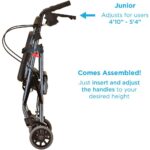 - SPECIFICATIONS: Approximate user height of 4’10” – 5’4″; Seat height is 18.5″; Weight Capacity is 300 lb.; Walker weight is 13 lb.; Handle height adjustable from 29″-33.25″; Width between handles: 15.75″; Overall dimensions: 22″W x 23.75”D x 33.25”H