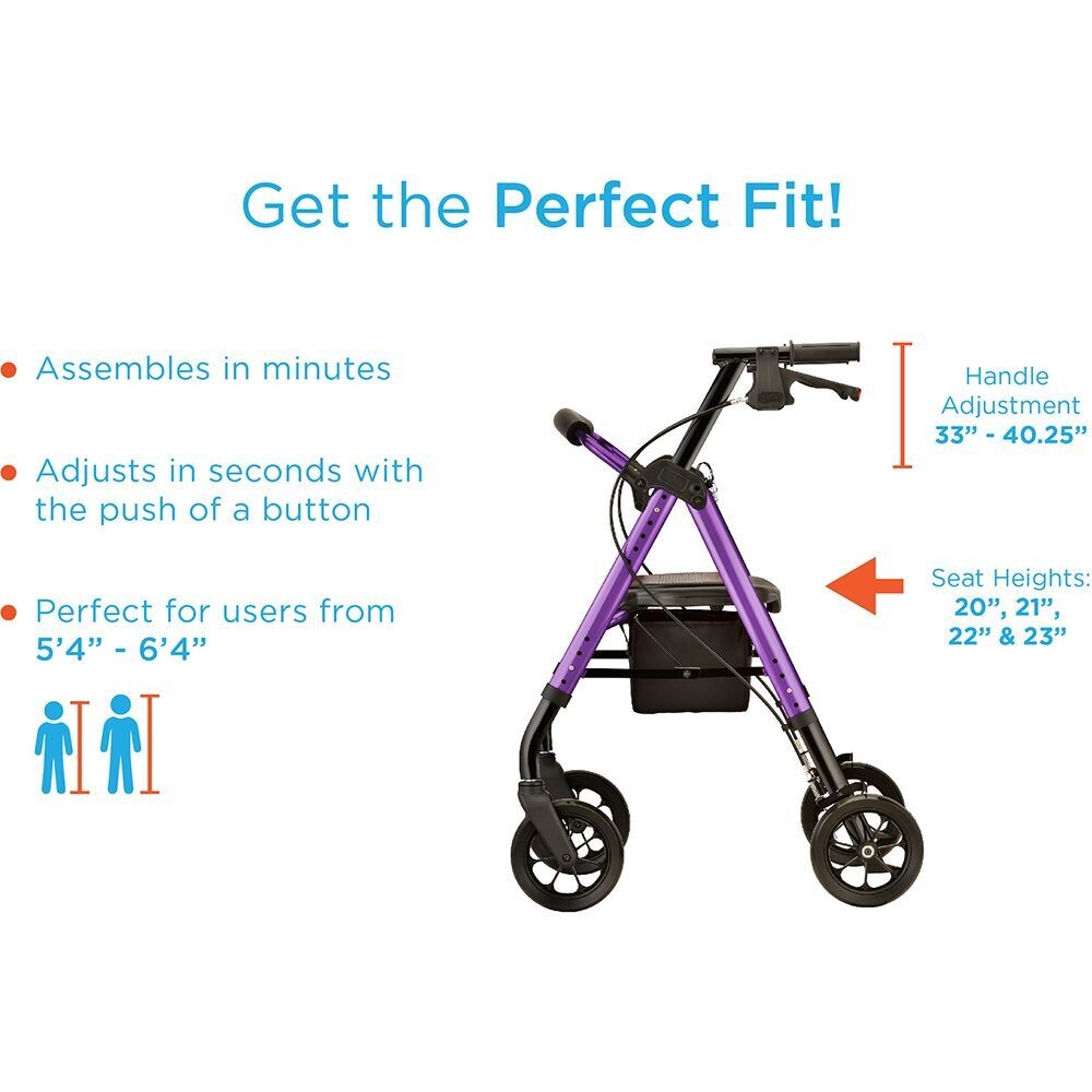 • GET THE PERFECT FIT with the Quick-Fit push buttons to easily adjust the handles and legs. The seat has 4 height adjustments: 21”, 22”, 23” & 24” and the handles adjust from 33” – 40”. The approximate user height is 5’4” – 6’4” and has a durable 450 lb weight capacity. Comes with the best warranty – a lifetime warranty on the frame and 5 year warranty on the brakes. Your complete satisfaction is our only goal.