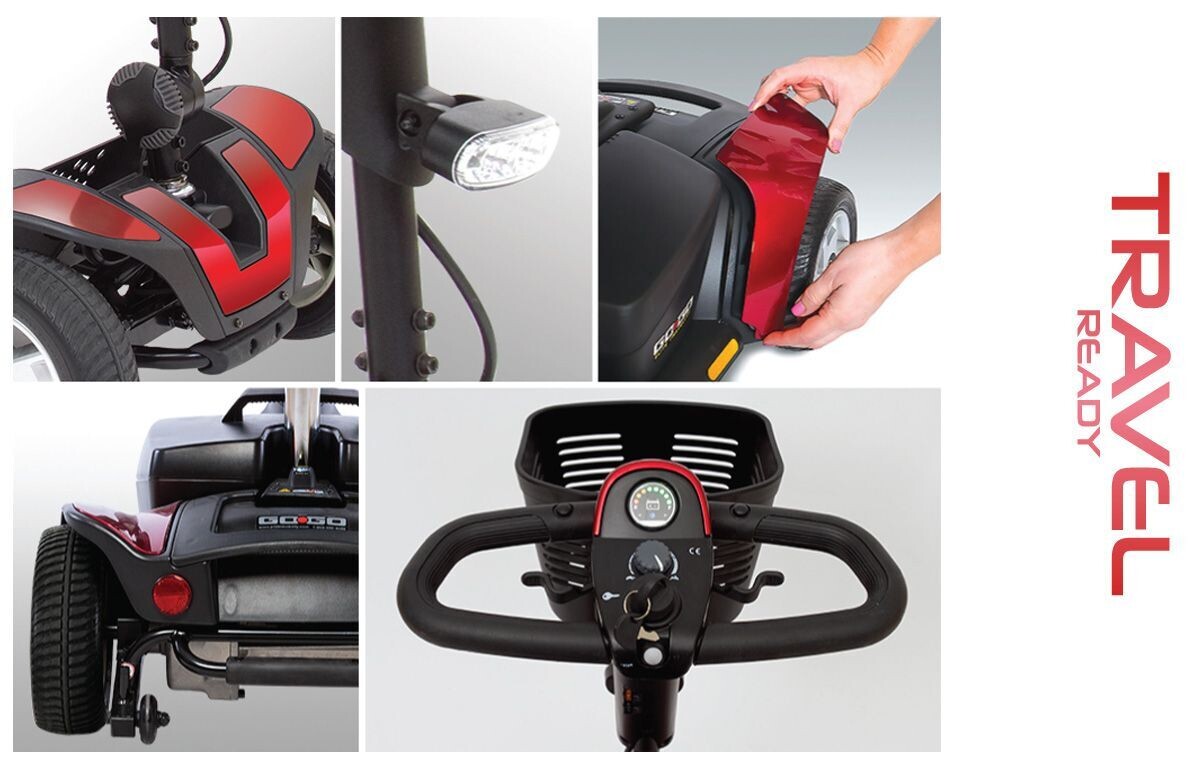 Offering feather-touch disassembly, the Go Go® Sport is the perfect choice for the adventurer in you! Whether you are traveling close to home, on a trip or to the mall, whatever your need is, travel has never been easier! Scooter disassembly is a breeze. Five lightweight pieces break down for fast transport from fully ridable to fitting comfortably into most car trunks.