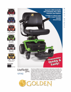 The Golden LiteRider Envy Power Wheelchair is the world’s lightest, most portable and maneuverable power chair! Now available in limited colors Envy Green, Satin Silver, Solar Flare Orange and Sunburst Yellow, as well as our standard Paradise Blue and Cherry Red. Designed with the end-user and their caregivers in mind, the LiteRider Envy motorized wheelchair…