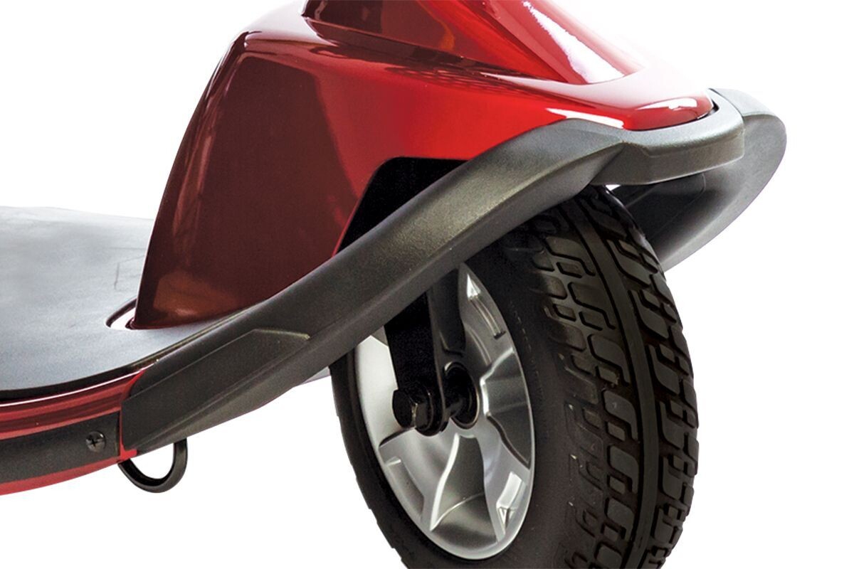 The Victory 10 4-Wheel provides the stability, power, and comfort you expect from Pride Mobility. Features start at the ground with four solid 10-inch, non-scuffing tires, which easily tackle varied terrain.